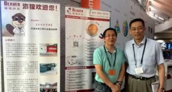 海貍納米科技(蘇州)有限公司CEO任輝博士參加了本次會議,并有幸邀請到本次會議的科學(xué)組委會成員、美國科學(xué)院、中國科學(xué)院院士施一公博士到海貍展位參觀指導(dǎo)。施博士對海貍自主研發(fā)的BeaverBeads™蛋白純化磁珠系列產(chǎn)品表示贊賞,認(rèn)為海貍的新型磁珠產(chǎn)品在蛋白純化過程中具有非常重要的應(yīng)用前景,尤其在粗蛋白簡單、快速、低成本處理方面有不可取代的優(yōu)勢。同時,施博士對回國創(chuàng)業(yè)的學(xué)子表達(dá)了深切的關(guān)注和支持,希望回國創(chuàng)業(yè)學(xué)子能做強(qiáng)、做大民族品牌。任輝博士對施老師的支持和鼓勵表示由衷的感謝,并表示一定要發(fā)揮海貍團(tuán)隊技術(shù)優(yōu)勢,把產(chǎn)品做好,真正做一個生物工具行業(yè)的民族品牌,并走向世界!