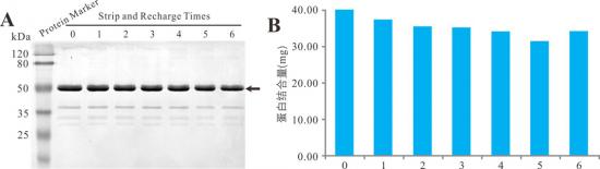 由圖A、B可知,海貍磁珠反復(fù)進(jìn)行多達(dá)六次再生處理,仍能保持較好的目標(biāo)蛋白結(jié)合能力和純度。