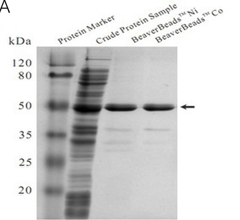 ? Co離子螯合磁珠蛋白結(jié)合量比Ni離子螯合磁珠稍低,但純度更高;