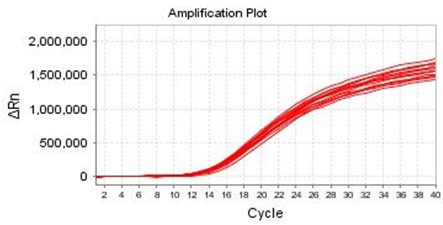 圖2 海貍產(chǎn)品對(duì)同一樣本多次提取的qPCR擴(kuò)增曲線